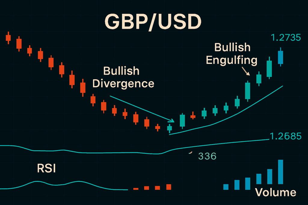 Midweek, GBP/USD hit deeply oversold territory, and our RSI-based model detected a bullish divergence forming on the hourly chart. Volume began ticking up, and price action showed early bullish engulfing patterns.