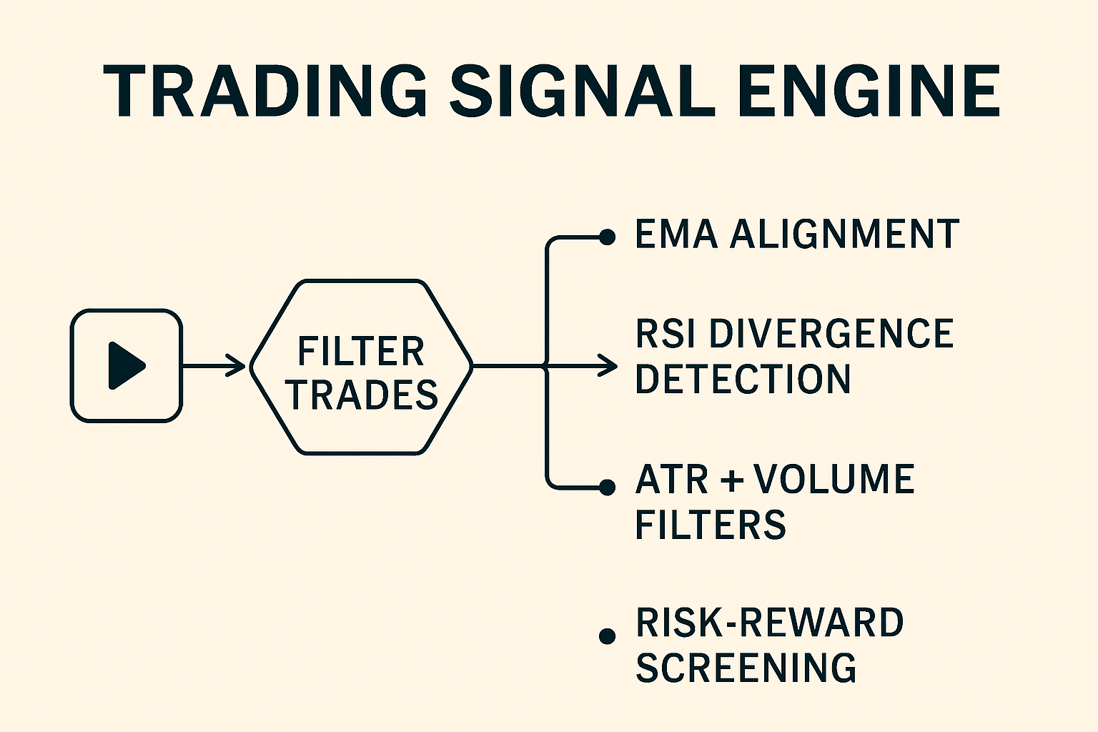 - Risk-reward pre-screening before any signal is issued