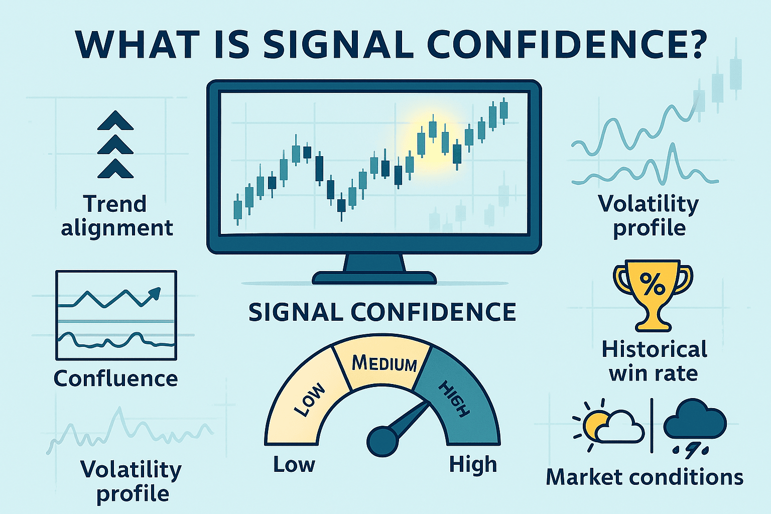 Signal confidence refers to how strong a signal is based on the factors that triggered it. At SignalsGrid, our algorithms assess signals using criteria like: